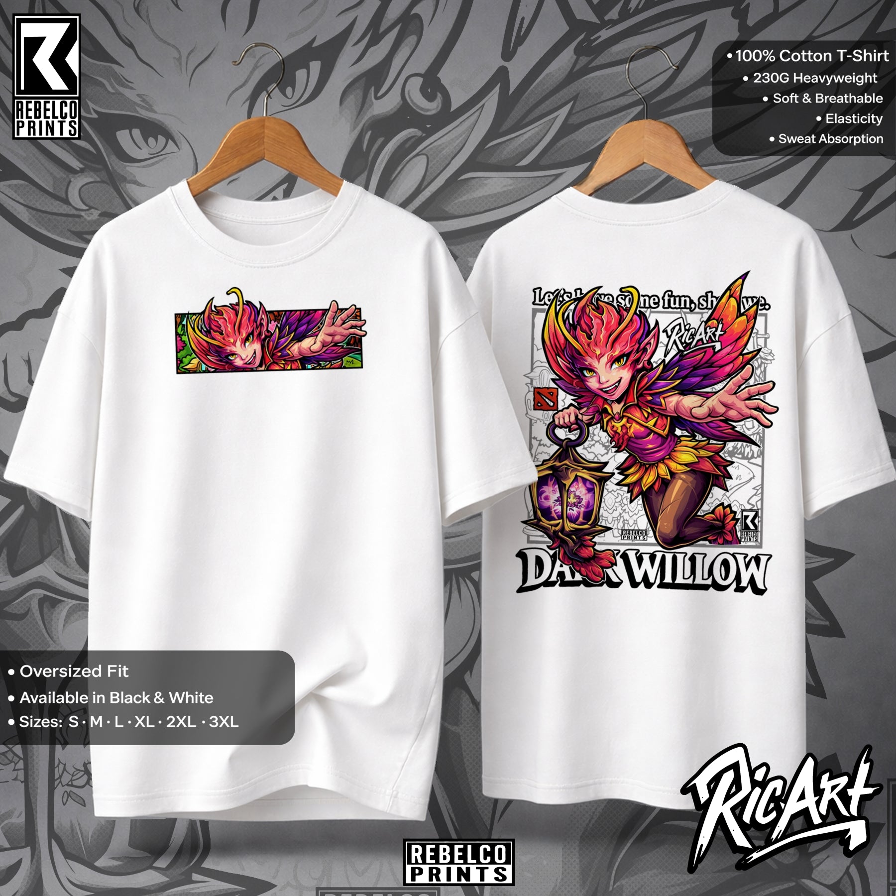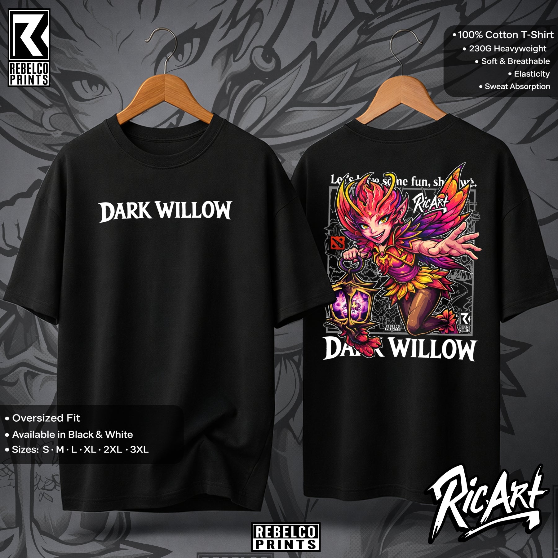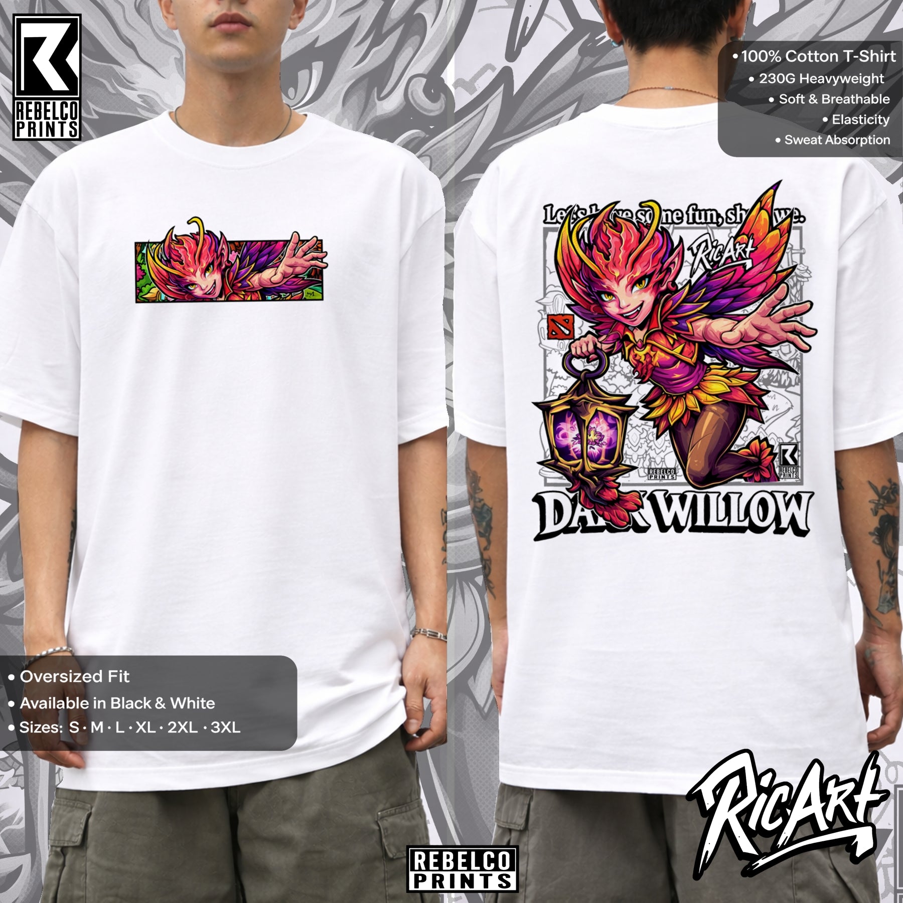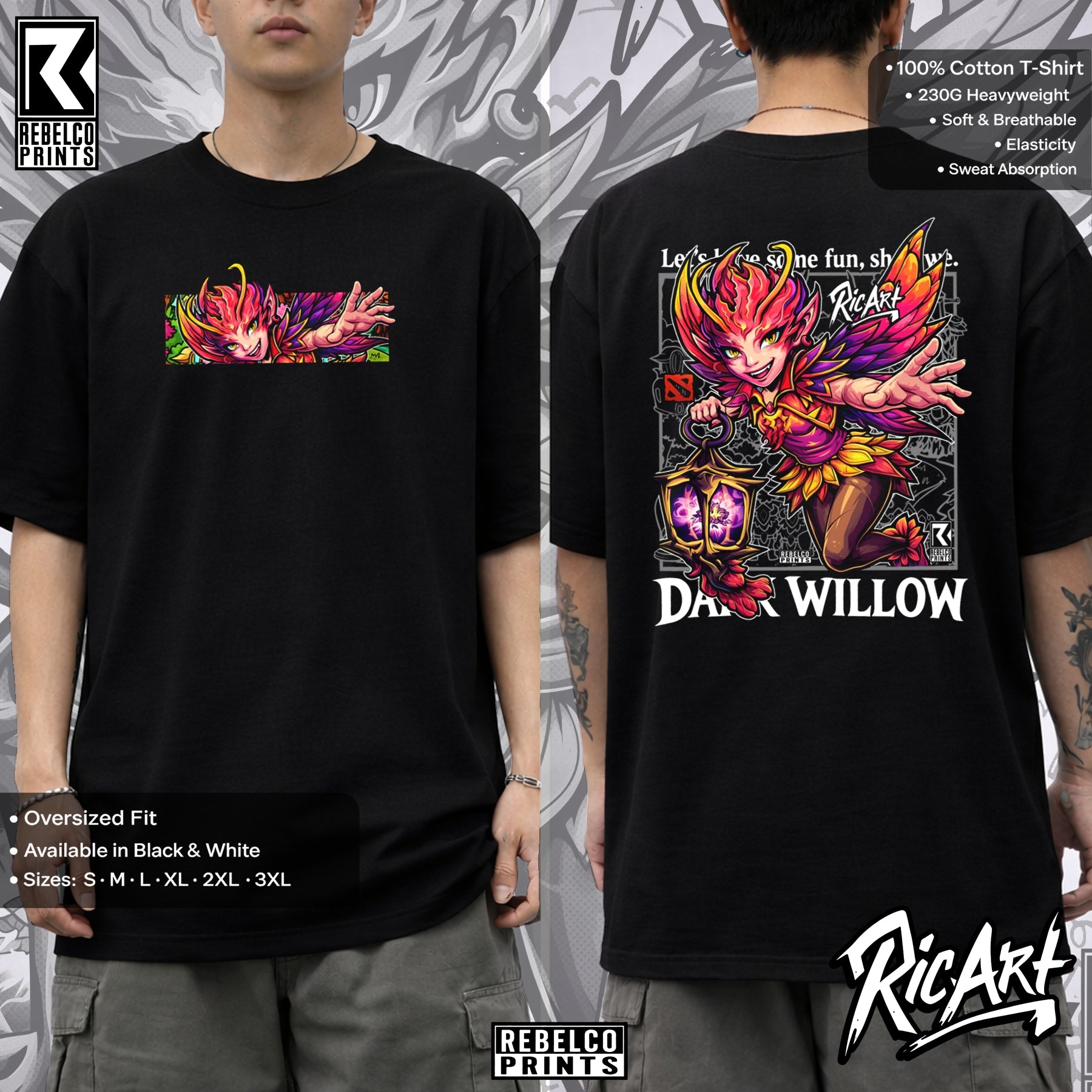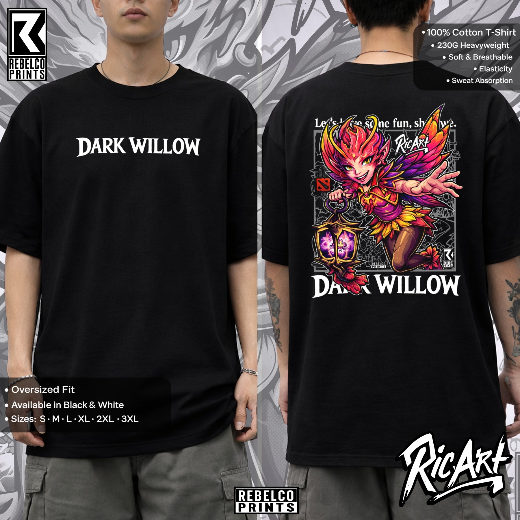 Dark Willow tee hits like a spell out of the Shadow Realm. Born a mischievous fae with deadly magic and wicked crowd control, she’ll haunt your lineup and your wardrobe with ruthless style. Perfect for fans of cunning plays and explosive team fights.