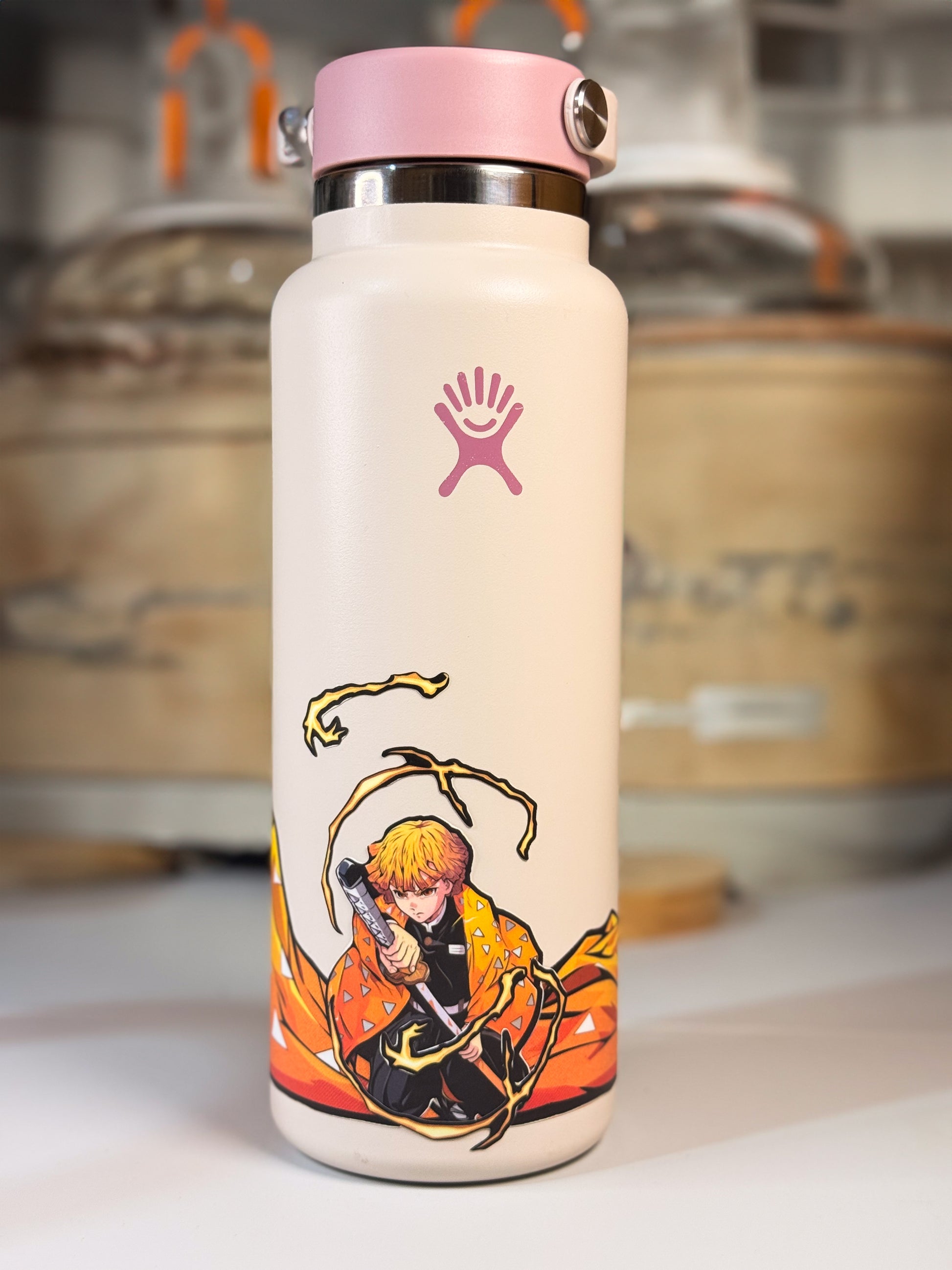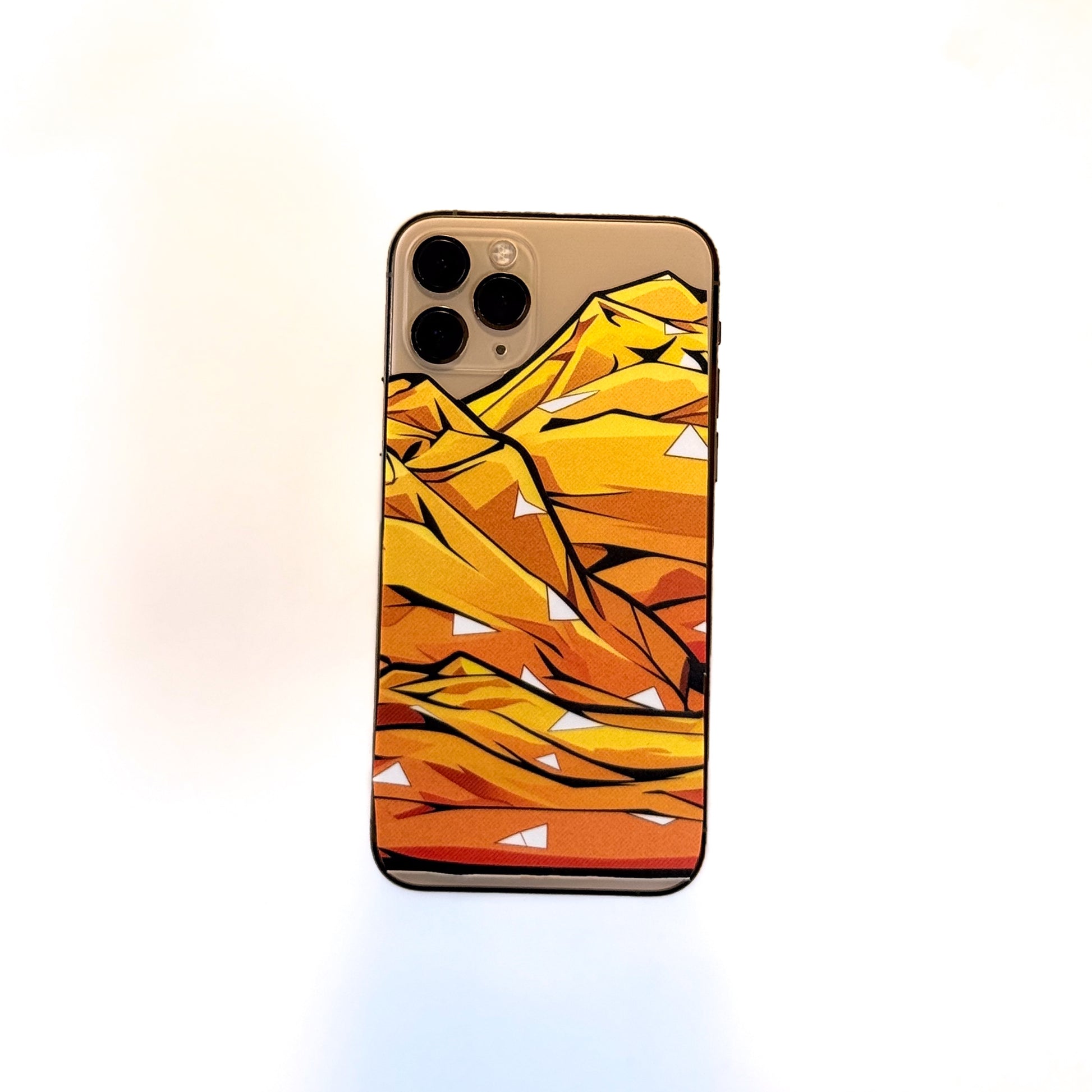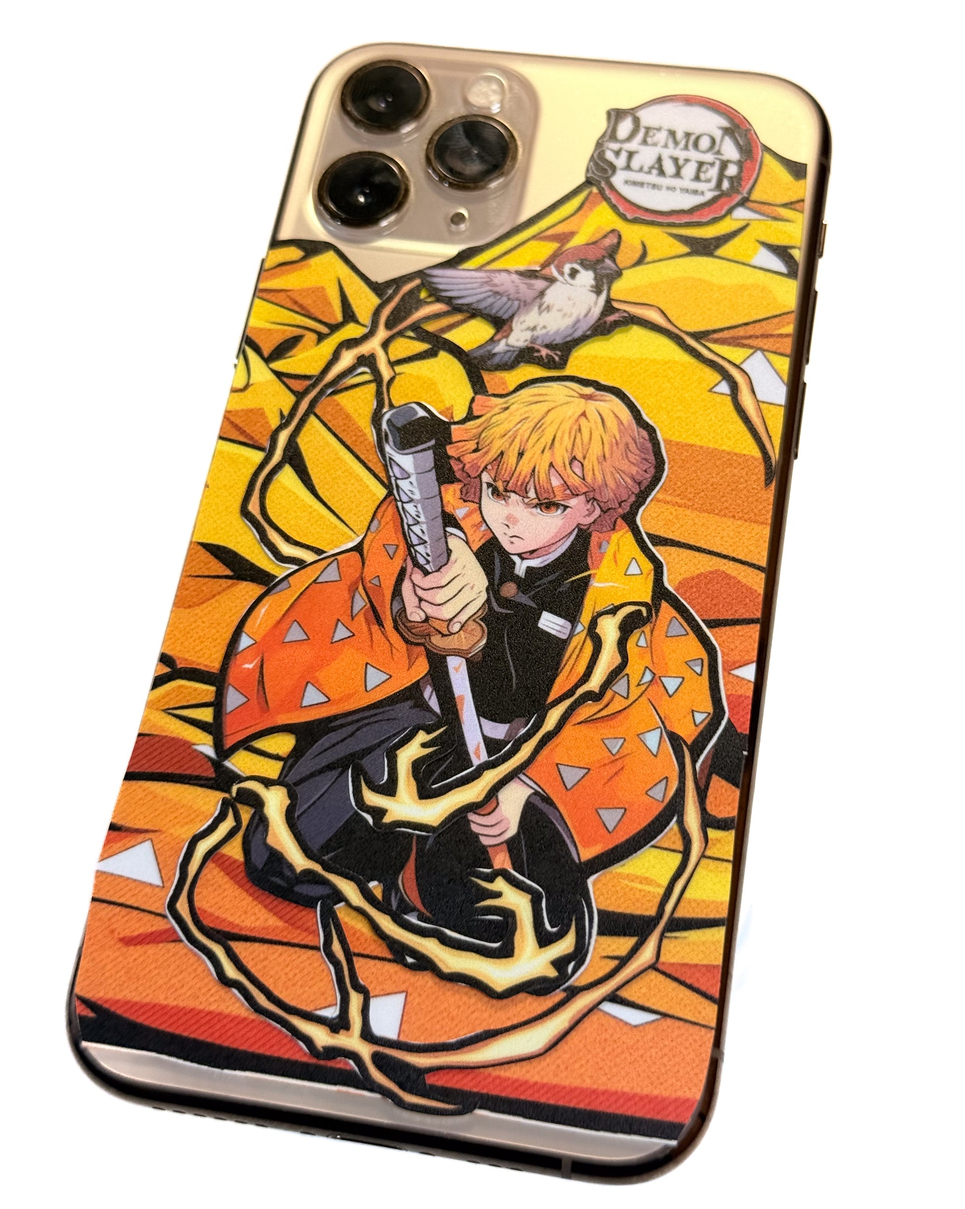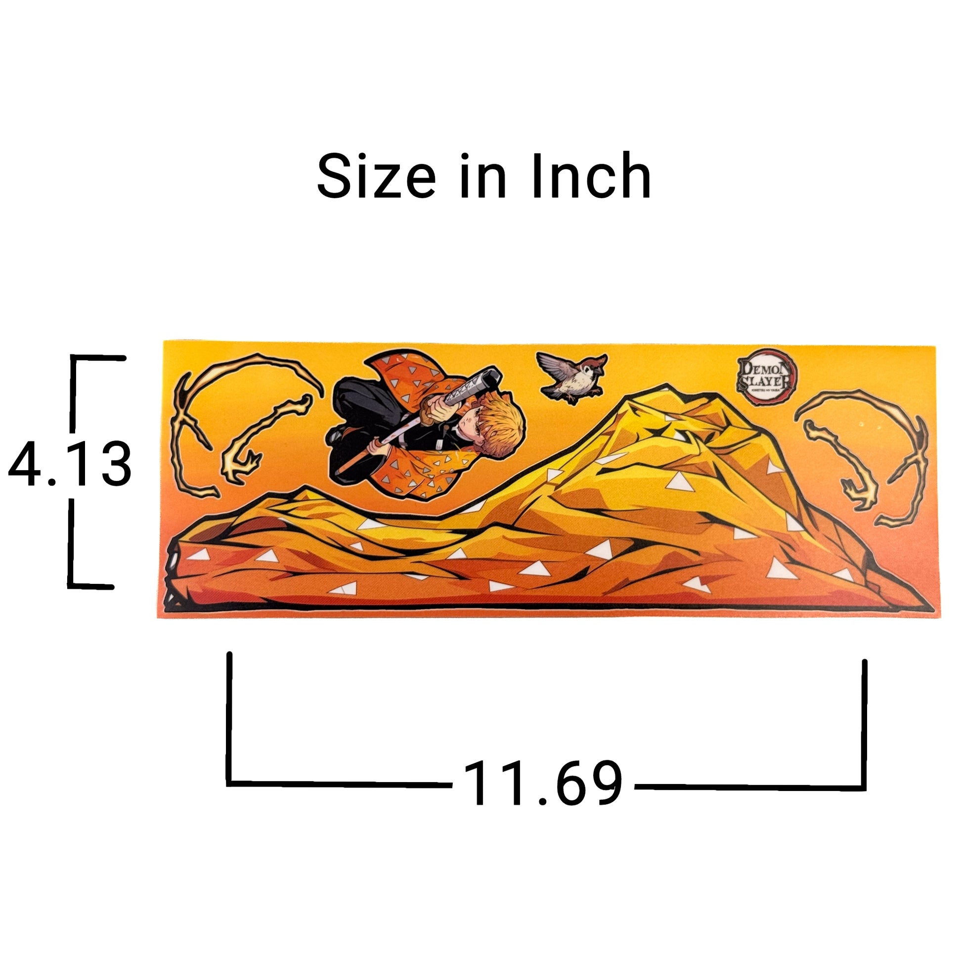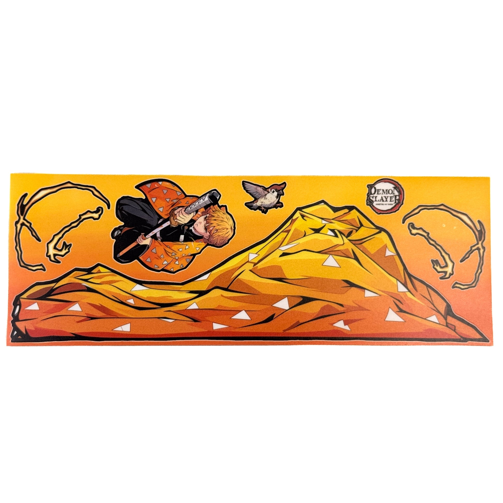 Channel the electrifying energy of Zenitsu Agatsuma with this striking FlexiForm sticker. Depicting his Thunder Breathing technique, the design captures Zenitsu in a moment of intense focus and power. He is adorned in his signature yellow-orange haori, featuring the traditional urokomon (scale) pattern—white triangles symbolizing protection and the shedding of fear, much like a snake discarding its skin. This pattern not only reflects Zenitsu's connection to lightning but also his journey of growth and courage. Perfect for fans who appreciate his blend of vulnerability and valor
